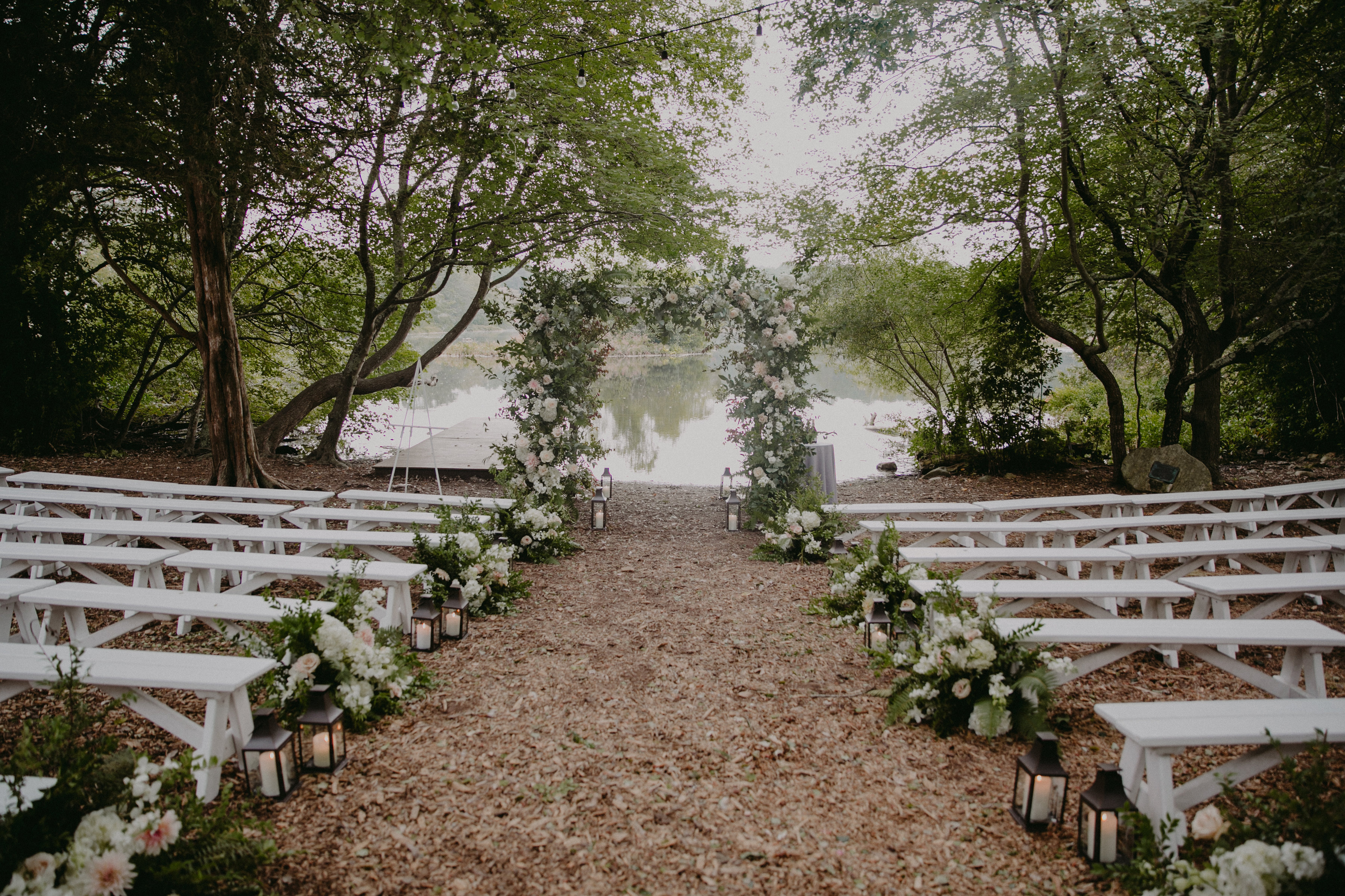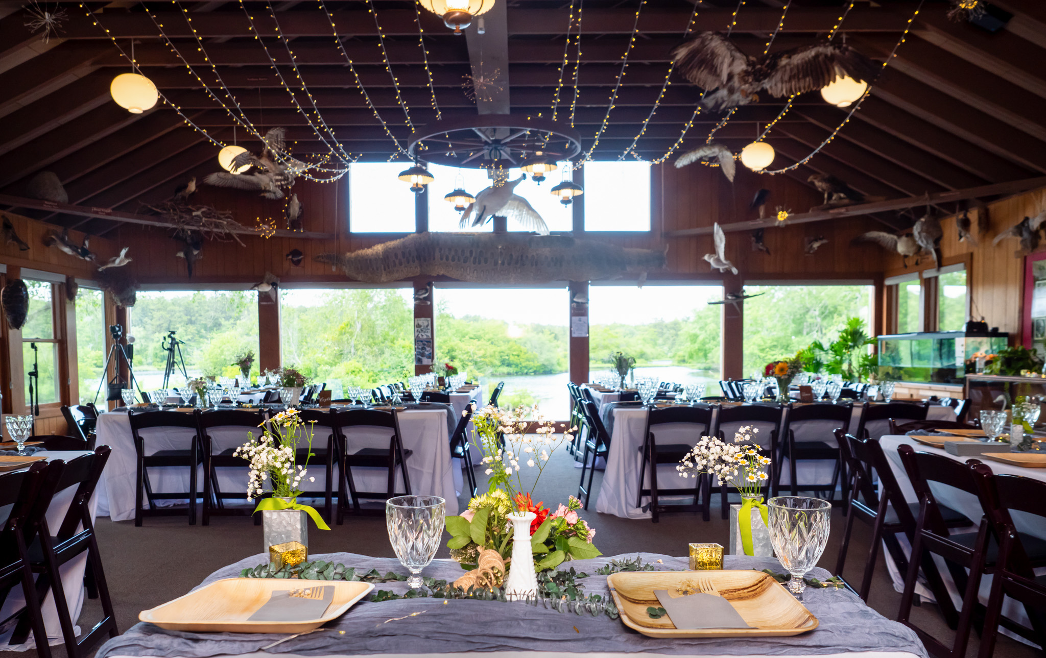 The Quogue Wildlife Refuge provides the perfect site for an eco-friendly and rustic, but sophisticated and graceful event. We are 80 miles east of Manhattan, in the beautiful village of Quogue – an area featuring gorgeous ocean beaches, local farms, vineyards and more. This location feels remote, but is just a few miles off of sunrise highway between Westhampton and Hamptons Bays in the gateway to the Hamptons. The sanctuary encompasses 305 acres of forest, wetlands and freshwater ponds and features a rustic event space for up to 65 guests with soaring ceilings, exposed beams and stunning views of the Old Ice Pond. Larger, tented events take place in the scenic clearing nestled between our Native Pollinator Garden & Animal Habitats and the Eastern shores of the Pond.